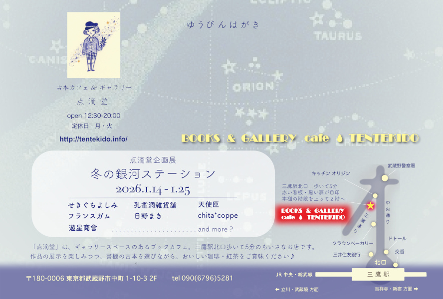 場所:BOOKS & GALLERY cafe 点滴堂 三鷹駅 北口 歩いて5分(→ access )